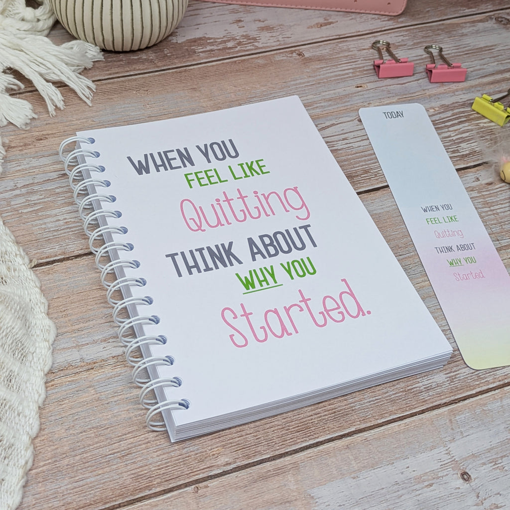 Front of the planner – progress trackers to record your starting points, weigh & measurement tracker, vision board, graph, habit tracker, activity tracker, countdown tracker, motivation jar & more.