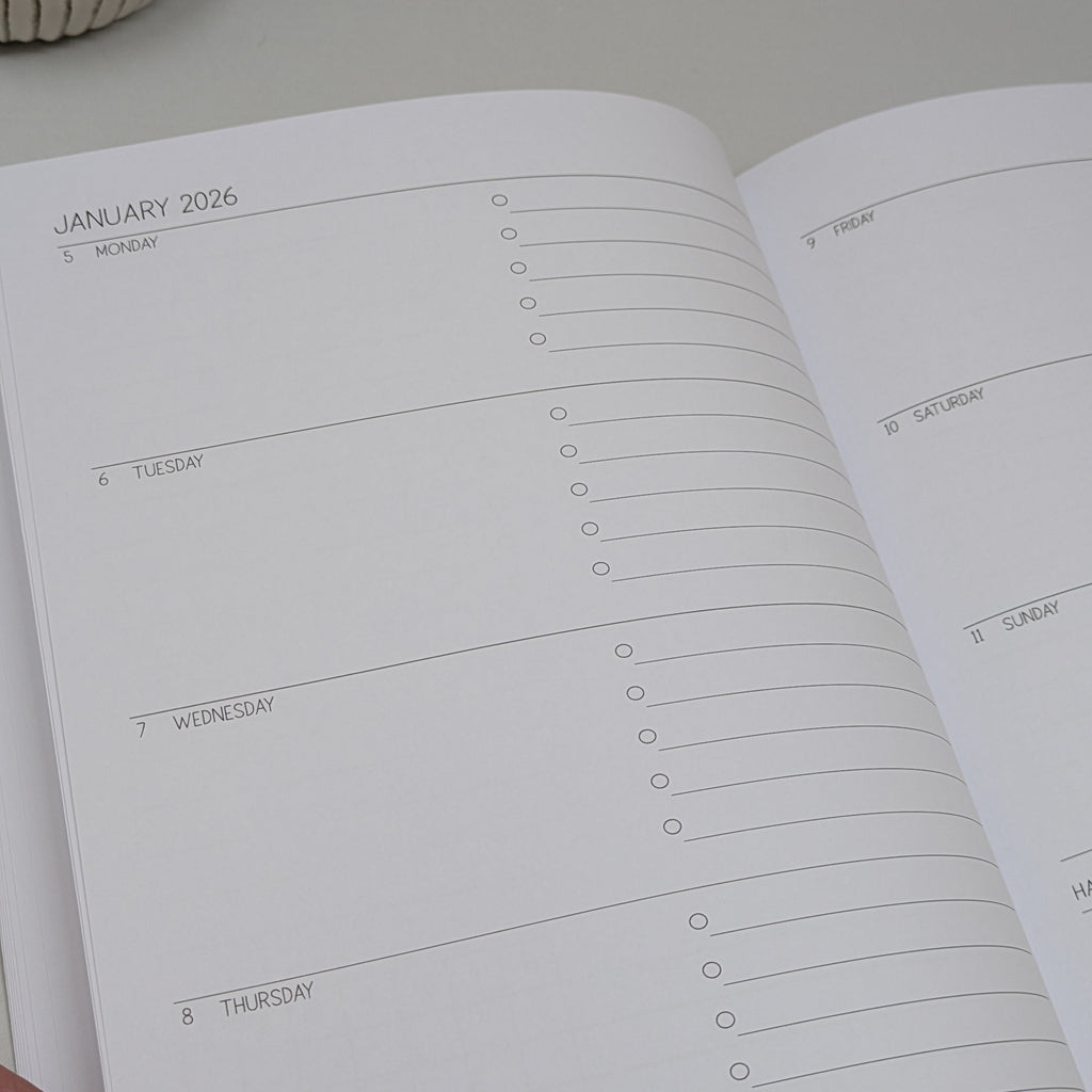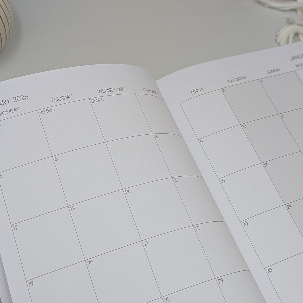 Start your 2026 feeling calm, organised, and inspired with a 2026 Diary with a soft-touch cover, thick smooth pages, and a simple, earthy design that helps you plan with purpose and ease. Each diary is handmade in the UK with care.