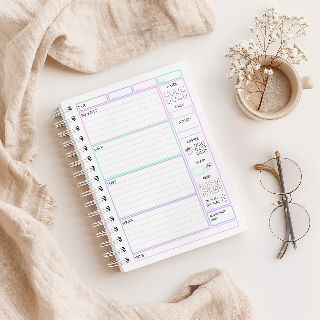 This planner prompts you to make a weekly plan, celebrate daily wins and self reflect to help you move forward on your journey to a healther you.